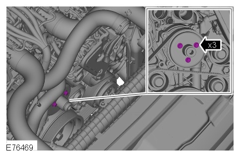 - Remove the accessory drive belt. For additional information, refer to: Accessory Drive Belt (303-05D Accessory Drive - TDV8 3.6L Diesel, Removal and Installation).