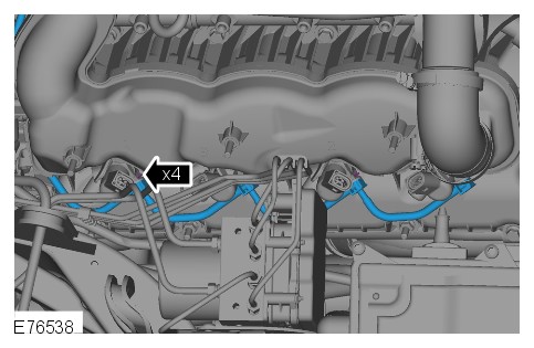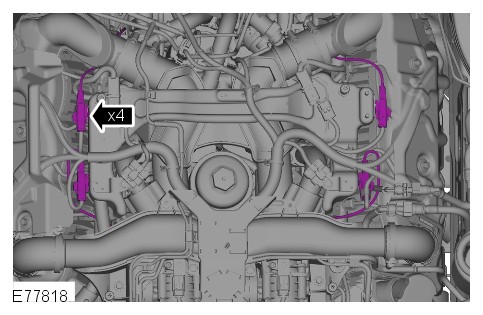 Using the pneumatic vacuum gun, vacuum foreign material from the high-pressure fuel supply lines, the fuel injectors and the fuel rail. For additional information, refer to: Fuel Injection Component Cleaning (303-04D Fuel Charging and Controls - TDV8 3.6L Diesel, General Procedures).