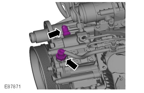 Using the pneumatic vacuum gun, vacuum foreign material from the high-pressure fuel supply lines, the fuel rails and the fuel injection pump. For additional information, refer to: Fuel Injection Component Cleaning (303-04D Fuel Charging and Controls - TDV8 3.6L Diesel, General Procedures).