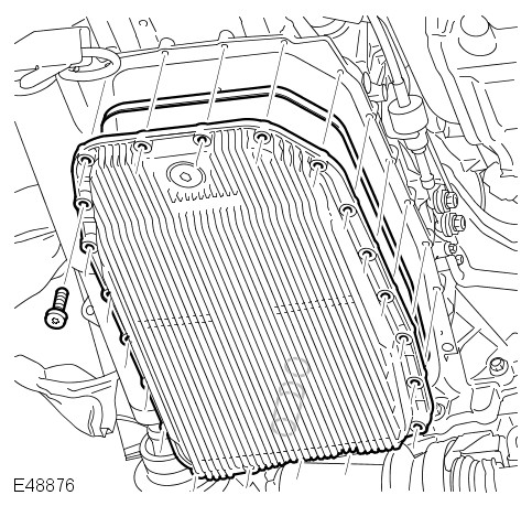 - Drain the transmission fluid. For additional information, refer to: Transmission Fluid Drain and Refill (307-01A Automatic Transmission/Transaxle - V8 S/C 4.2L Petrol, General Procedures).