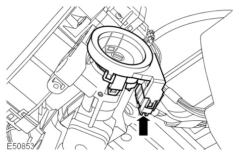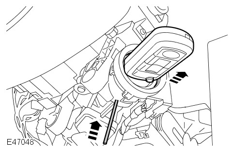 - Insert a pin, not exceeding 2 mm diameter, through the access hole in the ignition lock cylinder housing to depress the plunger, and release the ignition lock cylinder.